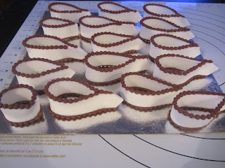 Når båndene er stivet er det tid for å pynte de med perlerader rundt kantene :) Dette var mye mer tidkrevende enn jeg hadde forventet, så vil ikke anbefale visst du har lite med tid. Her har jeg også funnet fram det rette redskapet til å skjære vekk den ekstra fondanten med ;)