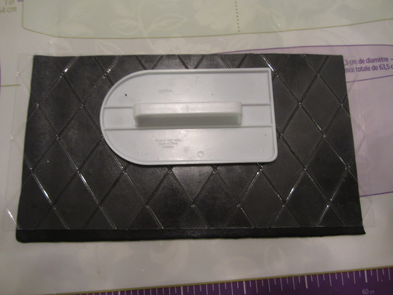 Diamond Impressions Mat er det veldig enkelt å få det til ;) Igjen bruker jeg fondant smootheren til å presse pregematten mot kaken.
